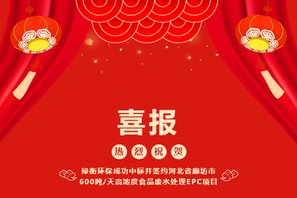 熱烈祝賀綠衡環(huán)保成功中標并簽約河北省廊坊市600噸/天高濃度...